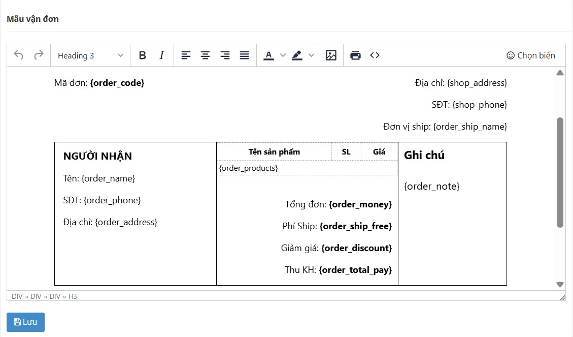Ví dụ: In vận đơn đơn hàng ta được mẫu như hình: