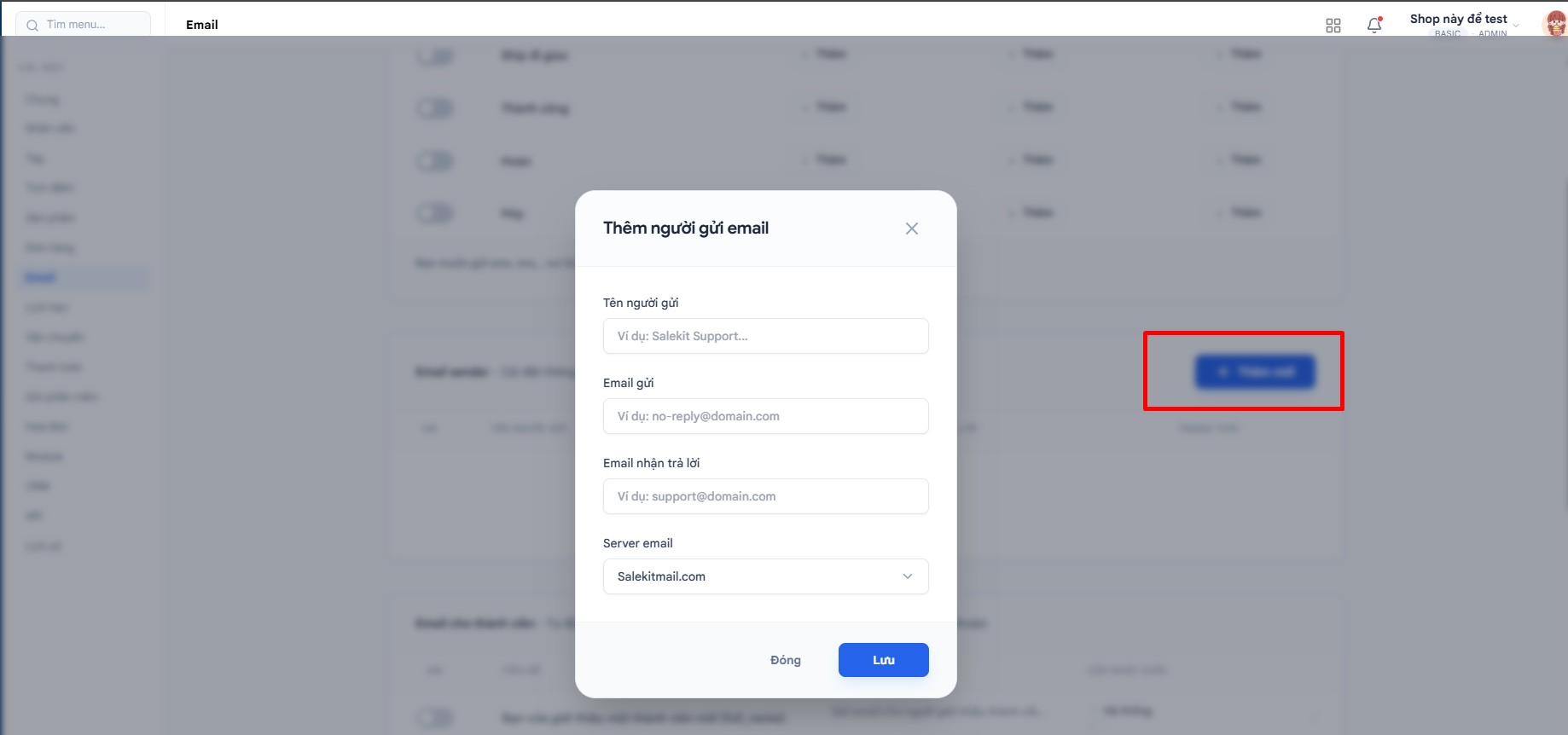 2. Sender email: Cài đặt thông tin người gửi email