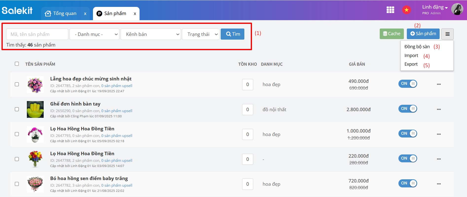 3. Đồng bộ sàn: Đồng bộ sản phẩm giữa các sàn TMĐT và salekit